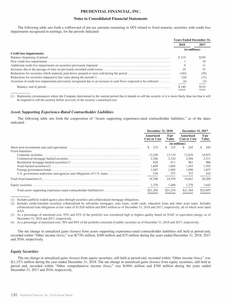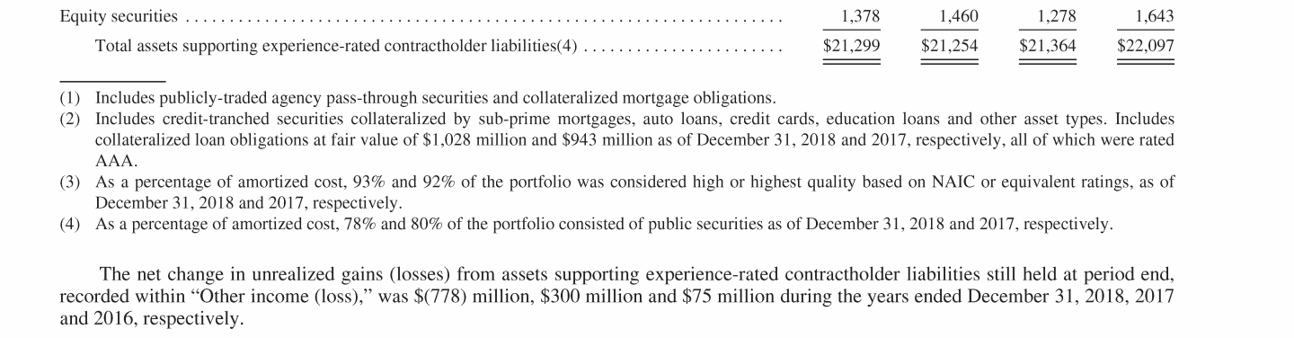 - Experience-Rated Contractholder Liabilities, Assets Supporting Experience-Rated Contractholder Liabilities and Other Related Investments