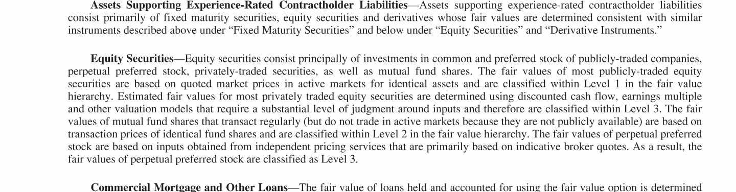 - Experience-Rated Contractholder Liabilities, Assets Supporting Experience-Rated Contractholder Liabilities and Other Related Investments