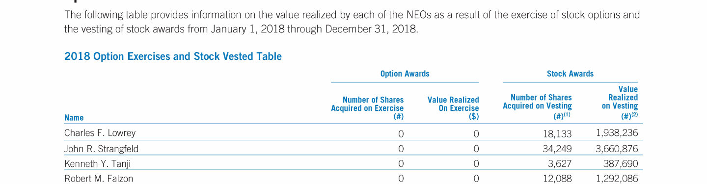 - Option Exercises and Stock Vested