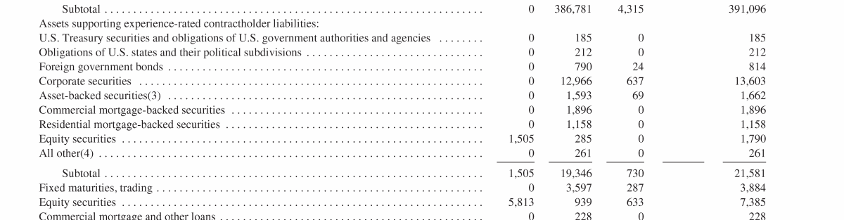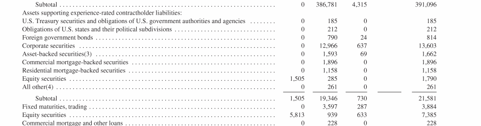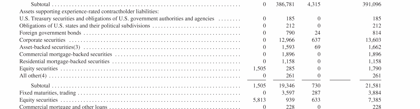 - Experience-Rated Contractholder Liabilities, Assets Supporting Experience-Rated Contractholder Liabilities and Other Related Investments