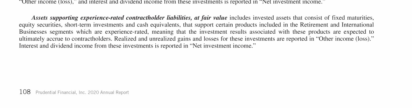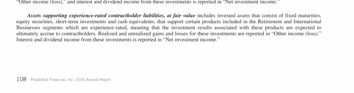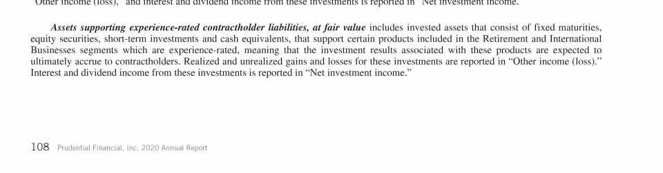 - Experience-Rated Contractholder Liabilities, Assets Supporting Experience-Rated Contractholder Liabilities and Other Related Investments