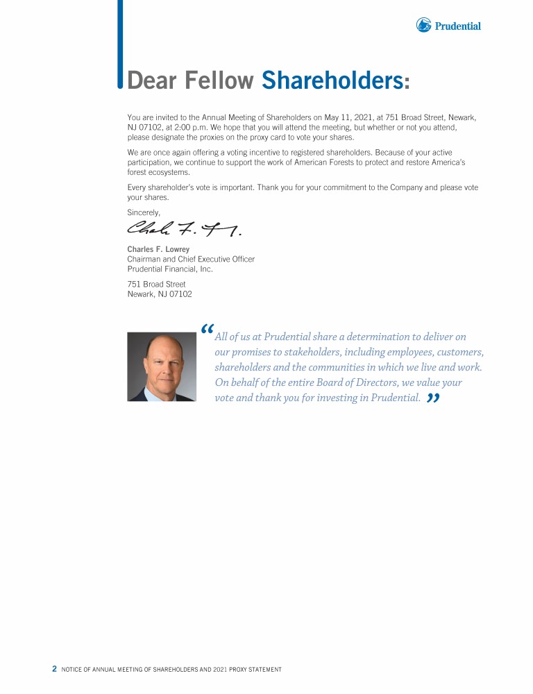 Notice of Annual Meeting of Shareholders of Prudential Financial, Inc.
