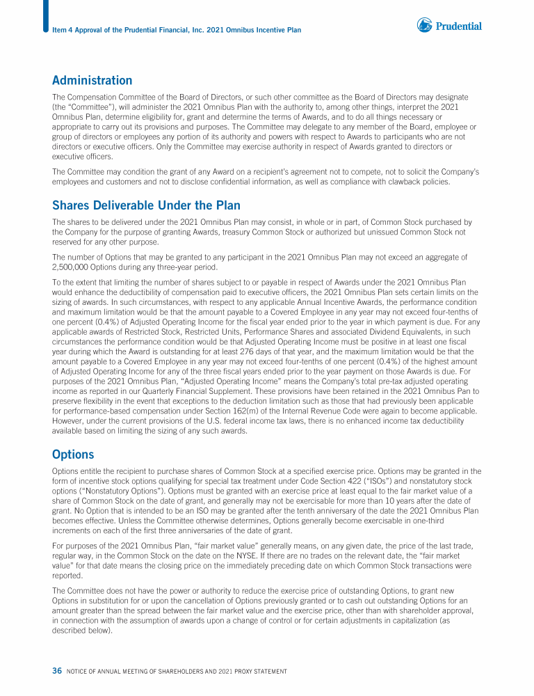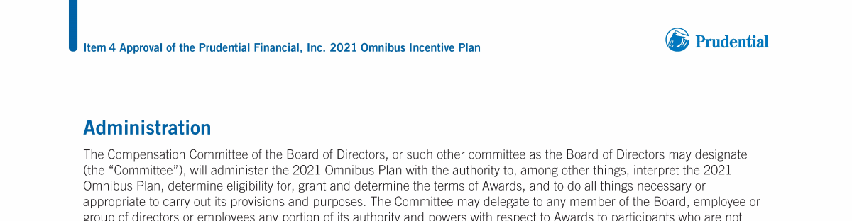 Item 4 - Approval of the Prudential Financial, Inc. 2021 Omnibus Incentive Plan