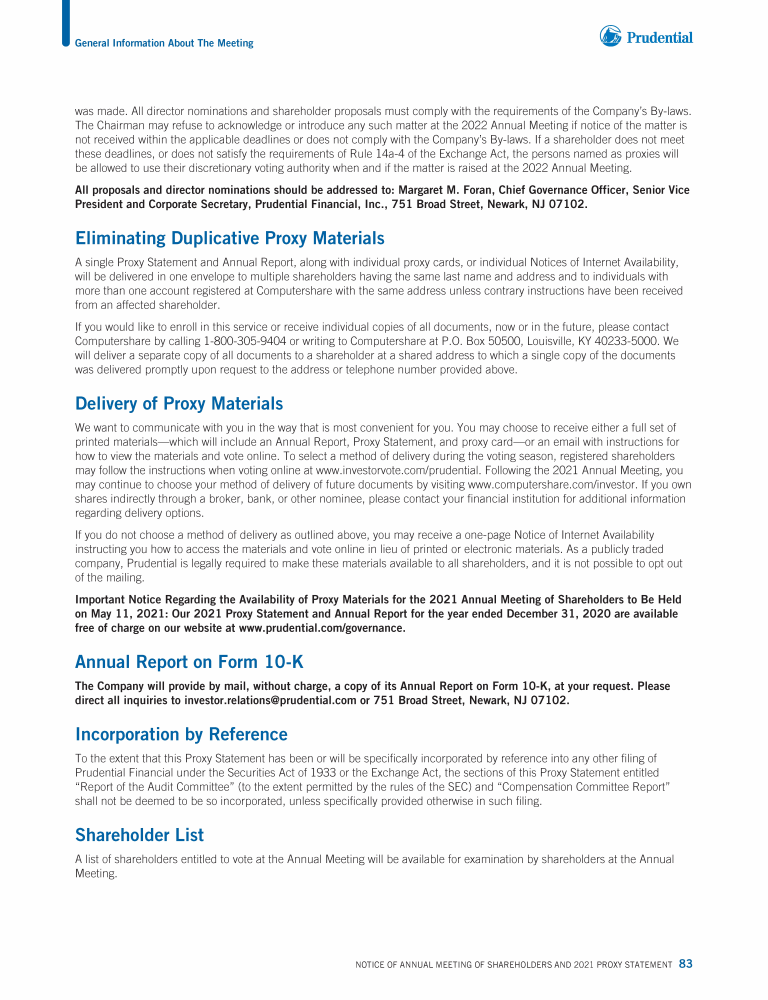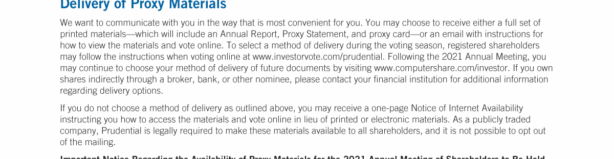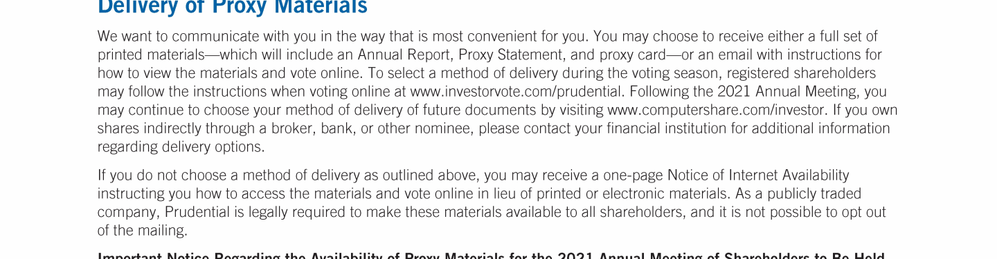 Notice of Annual Meeting of Shareholders of Prudential Financial, Inc.