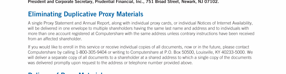 - Delivery of Proxy Materials