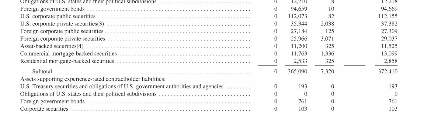 - Experience-Rated Contractholder Liabilities, Assets Supporting Experience-Rated Contractholder Liabilities and Other Related Investments