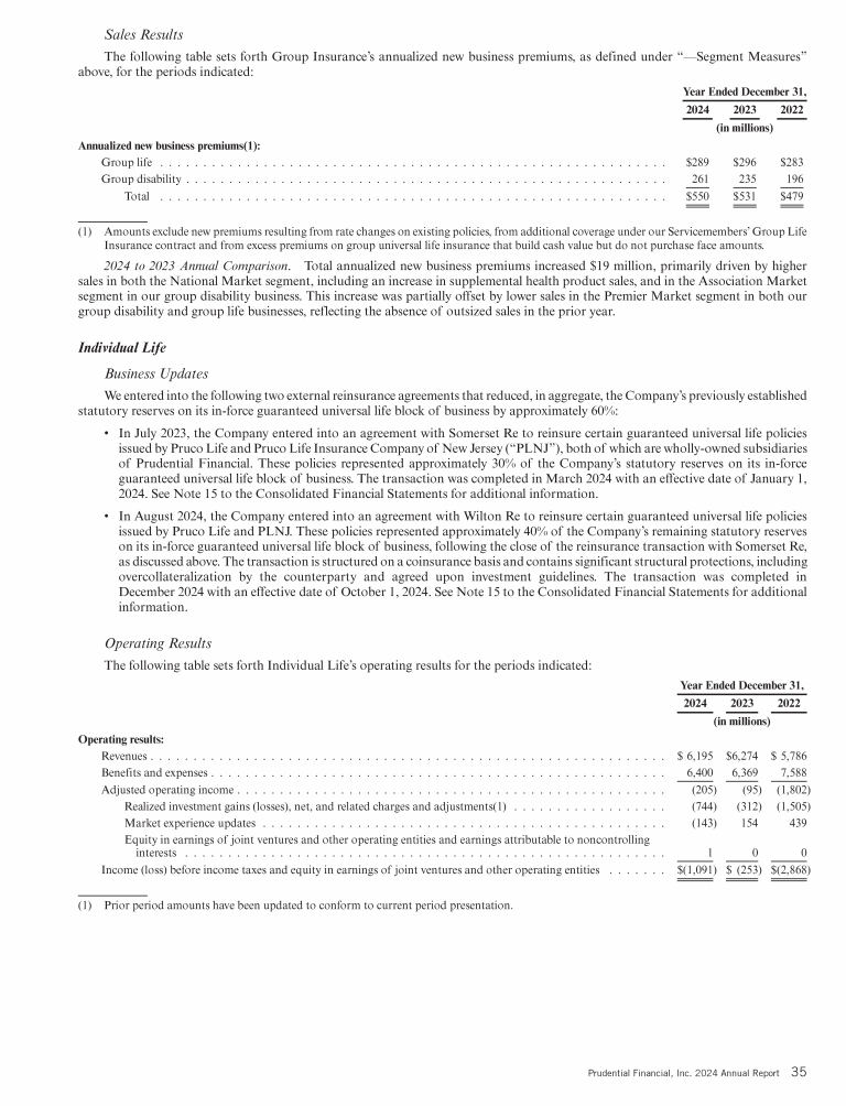 - Results of Operations by Segment