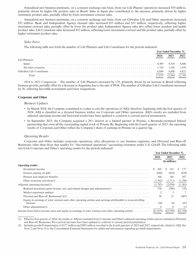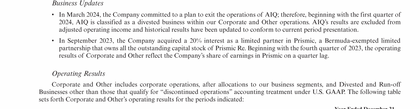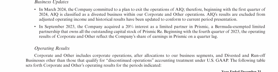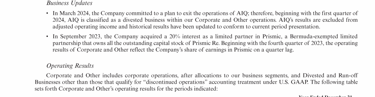 - Results of Operations by Segment
