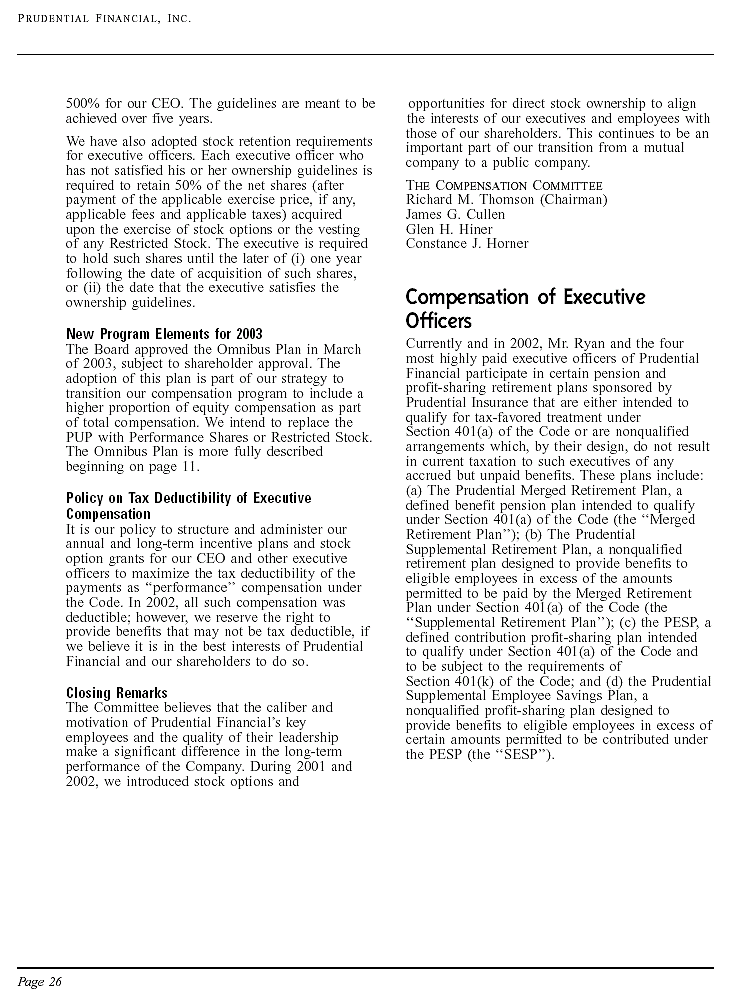 | Compensation of Executive Officers |  | Summary Compensation Table Retirement Plans |