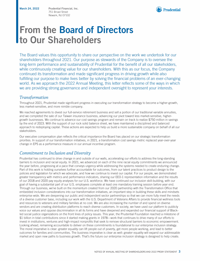 Notice of Annual Meeting of Shareholders of Prudential Financial, Inc.