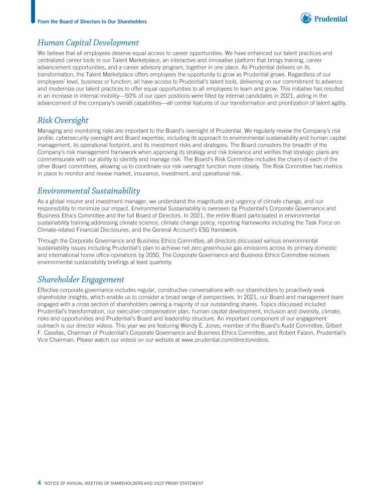 Letter from the Board of Directors to Our Shareholders