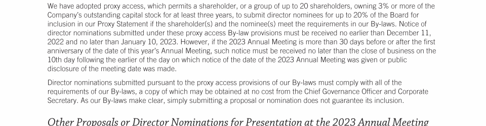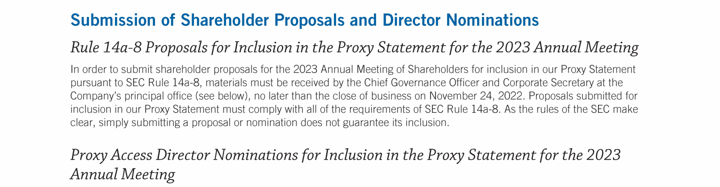 - Submission of Shareholder Proposals and Director Nominations