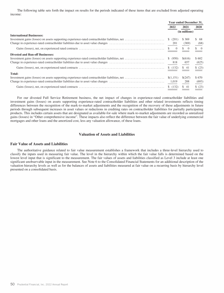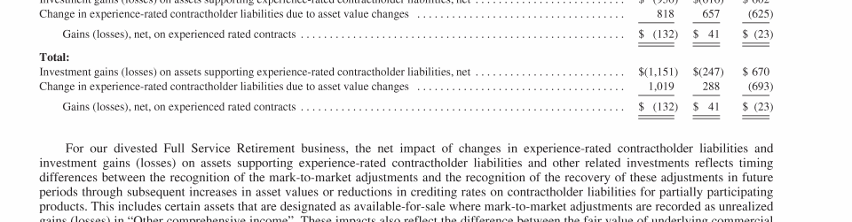 - Experience-Rated Contractholder Liabilities, Assets Supporting Experience-Rated Contractholder Liabilities and Other Related Investments