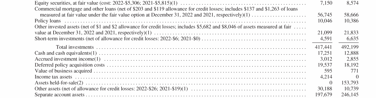 - Experience-Rated Contractholder Liabilities, Assets Supporting Experience-Rated Contractholder Liabilities and Other Related Investments